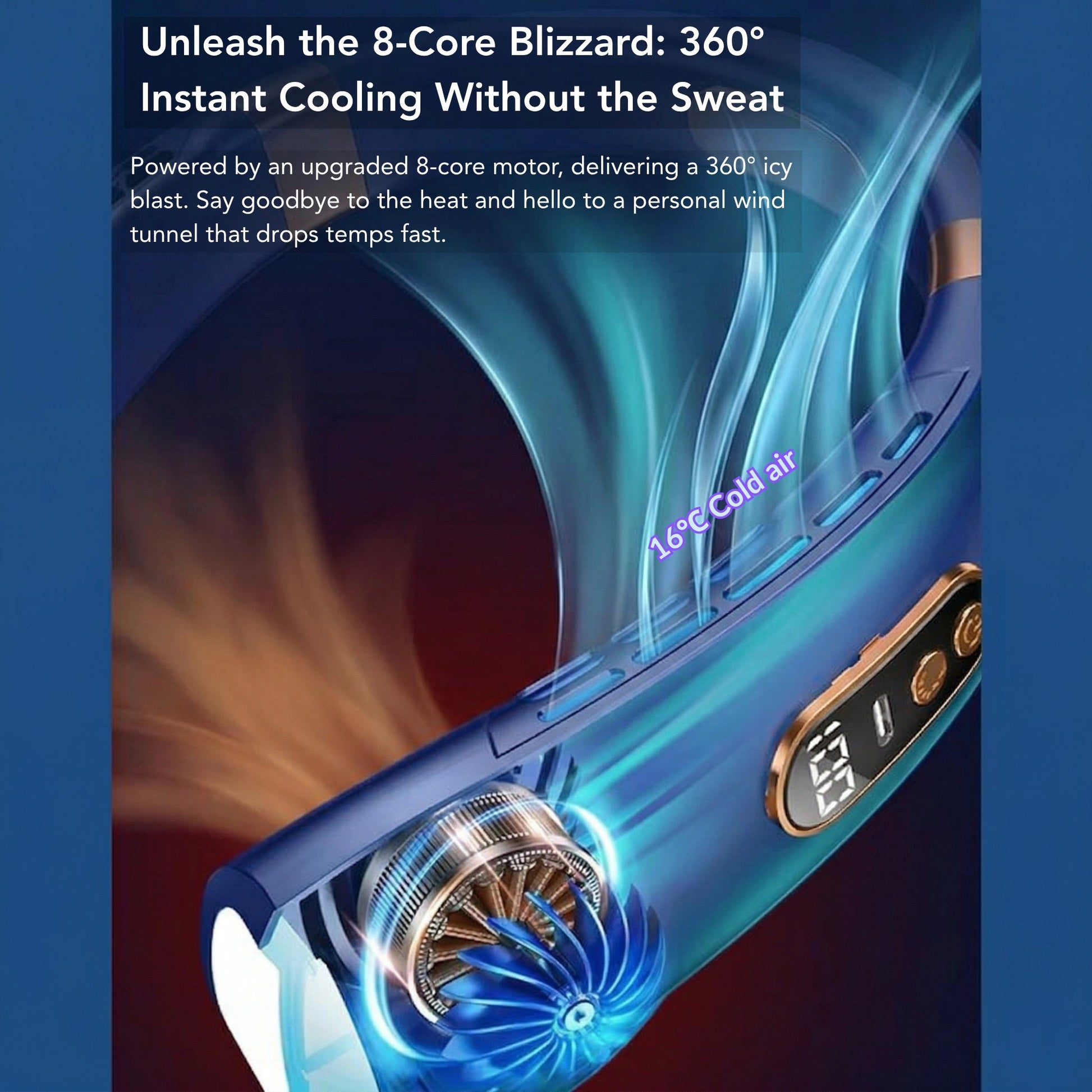 True Semiconductor Cooling: It doesn't just push air; it chills it. The built-in cooling plates deliver a crisp, refreshing breeze right where you need it most.